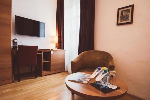 Pokoj o rozloze cca 20–25 m2 je vybaven vlastním sociálním zařízením, fénem, županem (na vyžádání na recepci), trezorem, minibarem, čajovými a kávovými kapslemi, telefonem, SAT/TV, WiFi připojením. Pokoj je nekuřácký. Tento typ pokoje se nachází v Domě Kainz a Seethaler. Některé pokoje Deluxe mohou mít balkon (není možnost výběru).