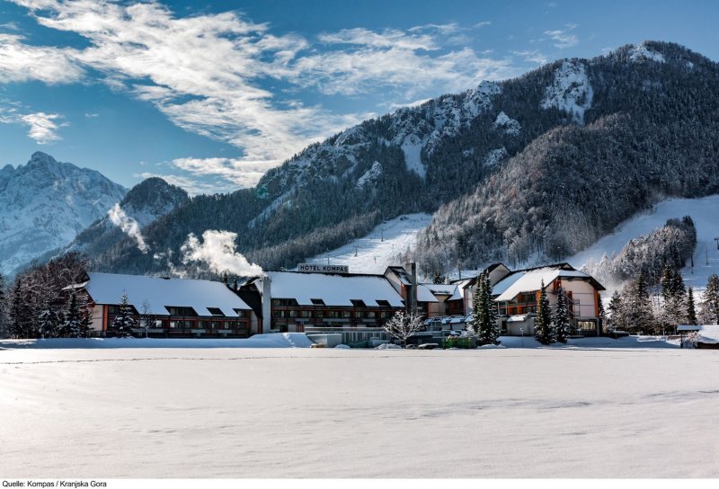 Komfortní čtyřhvězdičkový Hotel Kompas se nachází jen cca 100 m od vstupu do lyžařského střediska Kranjska Gora. Centrum města s různými nákupními možnostmi stejně jako obchod s potravinami najdete po cca 200 m. Skibus staví po pouze cca 100 m.