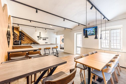 bar, wi-fi připojení k internetu, 2× seminární místnost s projekční