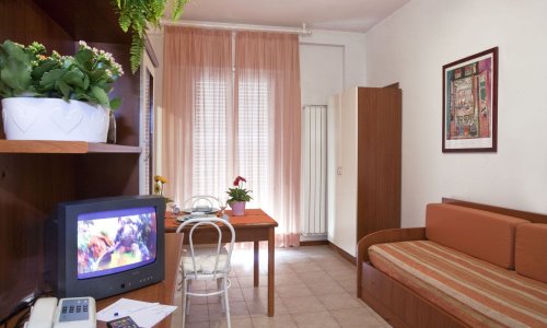 - MONO 2 – jednopokojový apartmán pro 2 osoby: obývací