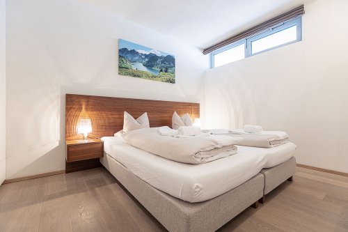 2. podlaží apartmánu: 2 ložnice s manželskou postelí, 1 ložnice zpravidla se 2 samostatnými lůžky, 2× sociální zařízení,
