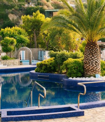 termálního parku Afrodite a Appolon s 8 termálními bazény o teplotě