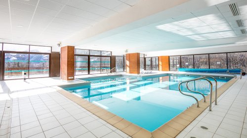 vnitřní bazén 14×8 m, sauna, pára, menší posilovna, squash a ping pong